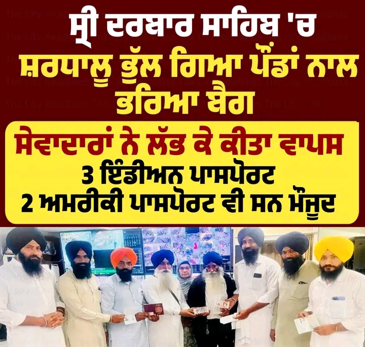 ਸ੍ਰੀ ਦਰਬਾਰ ਸਾਹਿਬ ‘ਚ ਸ਼ਰਧਾਲੂ ਭੁੱਲ ਗਿਆ ਪੌਂਡਾਂ ਨਾਲ ਭਰਿਆ ਬੈਗ, ਸੇਵਾਦਾਰਾਂ ਨੇ ਲੱਭ ਕੇ ਕੀਤਾ ਵਾਪਸ