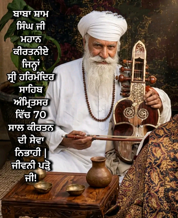 ਬਾਬਾ ਜੀ ਦਾ ਜਨਮ 1803 ਈਸਵੀ ਵਿੱਚ ਪਾਕਿਸਤਾਨ ਦੇ ਜ਼ਿਲ੍ਹਾ ਸਰਗੋਧਾ ਦੇ ਪਿੰਡ ਸ਼ਾਹਪੁਰ ਵਿਖੇ ਭਾਈ ਦਰਬਾਰੀ ਜੀ ਅਤੇ ਮਾਤਾ ਕ੍ਰਿਸ਼ਨ ਕੌਰ ਜੀ ਦੇ ਗ੍ਰਹਿ ਵਿਖੇ ਹੋਇਆ।ਬਾਬਾ ਜੀ ਸੇਵਾਪੰਥੀ ਸੰਪਰਦਾ ਨਾਲ ਸਬੰਧ ਰੱਖਦੇ ਸਨ। ਪੰਜ ਸਾਲ ਦੀ ਉਮਰ ਵਿੱਚ ਪਿਤਾ ਦਾ ਸਾਇਆ ਸਿਰ ਤੋਂ ਉੱਠ ਜਾਣ ਕਾਰਨ, ਸੰਤ ਰਾਮ ਸਿੰਘ ਜੀ ਨੇ ਉਨ੍ਹਾਂ ਦੀ ਦੇਖਭਾਲ ਕੀਤੀ ਅਤੇ ਉਨ੍ਹਾਂ ਨੂੰ ਅੰਮ੍ਰਿਤਸਰ ਲੈ ਆਏ। ਕੀਰਤਨ ਦੀ ਸੇਵਾ: ਉਹ ਸਾਰੰਦਾ ਵਾਦਨ ਦੇ ਮਾਹਰ ਸਨ ਅਤੇ 7 ਦਹਾਕਿਆਂ ਤੋਂ ਵੱਧ ਸਮਾਂ ਸੱਚਖੰਡ ਸ੍ਰੀ ਹਰਿਮੰਦਰ ਸਾਹਿਬ ਵਿਖੇ ਕੀਰਤਨ ਕਰਦੇ ਰਹੇ। ਬਾਬਾ ਜੀ ਬਹੁਤ ਹੀ ਨਿਮਰ ਸੁਭਾਅ ਦੇ ਸਨ।ਉਹ ਰੋਜ਼ਾਨਾ ਅੰਮ੍ਰਿਤ ਵੇਲੇ ‘ਆਸਾ ਦੀ ਵਾਰ’ ਦਾ ਜਾਂ ਤਪੇਹਰੇ ਦੀ ਚੌਕੀ ਦਾ ਕੀਰਤਨ ਕਰਦੇ ਸਨ। ਬਾਬਾ ਜੀ 123 ਸਾਲ ਦੀ ਲੰਮੀ ਉਮਰ ਭੋਗ ਕੇ 23 ਅਪ੍ਰੈਲ 1926 ਨੂੰ ਅਕਾਲ ਚਲਾਣਾ ਕਰ ਗਏ।ਉਹ ਗੁਰਬਾਣੀ ਦੇ ਸ਼ੁੱਧ ਉਚਾਰਨ ‘ਤੇ ਬਹੁਤ ਜ਼ੋਰ ਦਿੰਦੇ ਸਨ। ਉਨ੍ਹਾਂ ਦੇ ਜੀਵਨ ਦੀਆਂ ਕਈ ਸਾਖੀਆਂ ਅਤੇ ਕਰਾਮਾਤਾਂ Gurmat Bibek ਵਰਗੀਆਂ ਵੈੱਬਸਾਈਟਾਂ ‘ਤੇ ਮਿਲਦੀਆਂ ਹਨ। ਅੰਮ੍ਰਿਤਸਰ ਦੇ ਆਟਾ ਮੰਡੀ ਇਲਾਕੇ ਵਿੱਚ ਉਨ੍ਹਾਂ ਦੇ ਨਾਮ ‘ਤੇ ਧਰਮਸ਼ਾਲਾ ਸੰਤ ਬਾਬਾ ਸ਼ਾਮ ਸਿੰਘ ਜੀ ਸਥਿਤ ਹੈ, ਜਿੱਥੇ ਅੱਜ ਵੀ ਉਨ੍ਹਾਂ ਦੀ ਯਾਦ ਵਿੱਚ ਗੁਰਮਤਿ ਸਮਾਗਮ ਕਰਵਾਏ ਜਾਂਦੇ ਹਨ। ਬਾਬਾ ਸ਼ਾਮ ਸਿੰਘ ਜੀ ਇੰਨੇ ਨਿਰਮਾਣ (ਨਿਮਰ) ਸਨ| ਇੱਕ ਵਾਰ ਕੁਝ ਸੰਗਤਾਂ ਨੇ ਦੇਖਿਆ ਕਿ ਬਾਬਾ ਜੀ ਪਰਿਕਰਮਾ ਵਿੱਚੋਂ ਝਾੜੂ ਦੀ ਸੇਵਾ ਦੌਰਾਨ ਕੂੜਾ ਸਾਫ ਕਰ ਰਹੇ ਸਨ, ਜਦੋਂ ਸੰਗਤ ਨੇ ਉਨ੍ਹਾਂ ਨੂੰ ਰੋਕਣ ਦੀ ਕੋਸ਼ਿਸ਼ ਕੀਤੀ ਅਤੇ ਕਿਹਾ ਕਿ “ਬਾਬਾ ਜੀ, ਤੁਸੀਂ ਇੰਨੇ ਮਹਾਨ ਕੀਰਤਨੀਏ ਹੋ, ਇਹ ਕੰਮ ਸੇਵਾਦਾਰਾਂ ਨੂੰ ਕਰਨ ਦਿਓ,” ਤਾਂ ਬਾਬਾ ਜੀ ਨੇ ਬੜੀ ਨਿਮਰਤਾ ਨਾਲ ਜਵਾਬ ਦਿੱਤਾ:ਇਹ ਗੁਰੂ ਰਾਮਦਾਸ ਪਾਤਸ਼ਾਹ ਦਾ ਦਰ ਹੈ, ਇੱਥੇ ਕੂੜਾ ਚੁੱਕਣ ਦੀ ਸੇਵਾ ਵੀ ਵੱਡੀ ਭਾਗਾਂ ਦੀ ਗੱਲ ਹੈ। ਮੈਂ ਆਪਣੇ ਮਨ ਦੀ ਮੈਲ ਧੋਣ ਲਈ ਇਹ ਸੇਵਾ ਕਰਦਾ ਹਾਂ।”ਬਾਬਾ ਸ਼ਾਮ ਸਿੰਘ ਜੀ ਸੇਵਾਪੰਥੀ (ਜਿਨ੍ਹਾਂ ਨੂੰ ਅੱਡਣਸ਼ਾਹੀ ਵੀ ਕਿਹਾ ਜਾਂਦਾ ਹੈ) ਸੰਪਰਦਾ ਨਾਲ ਸਬੰਧ ਰੱਖਦੇ ਸਨ।ਸ਼ੁਰੂਆਤ: ਇਸ ਸੰਪਰਦਾ ਦੀ ਨੀਂਹ ਭਾਈ ਕਨ੍ਹੱਈਆ ਜੀ ਨੇ ਰੱਖੀ ਸੀ, ਜਿਨ੍ਹਾਂ ਨੇ ਜੰਗ ਦੇ ਮੈਦਾਨ ਵਿੱਚ ਦੋਸਤ-ਦੁਸ਼ਮਣ ਦਾ ਵਿਤਕਰਾ ਕੀਤੇ ਬਿਨਾਂ ਸਭ ਨੂੰ ਪਾਣੀ ਪਿਲਾਇਆ ਸੀ। ਇਸ ਪੰਥ ਦਾ ਮੁੱਖ ਉਦੇਸ਼ “ਸੇਵਾ ਅਤੇ ਸਿਮਰਨ” ਹੈ। ਇਹ ਲੋਕ ਬਹੁਤ ਸ਼ਾਂਤ ਸੁਭਾਅ ਦੇ ਹੁੰਦੇ ਹਨ ਅਤੇ ਲੋਕਾਈ ਦੀ ਨਿਸ਼ਕਾਮ ਸੇਵਾ ਕਰਦੇ ਹਨ।ਸਾਰੰਦਾ ਸਾਜ਼ ਦੀ ਮਹੱਤਤਾਬਾਬਾ ਜੀ ਜਿਸ ਸਾਰੰਦਾ (Saranda) ਨਾਲ ਕੀਰਤਨ ਕਰਦੇ ਸਨ, ਉਹ ਸਾਜ਼ ਪੰਜਵੇਂ ਪਾਤਸ਼ਾਹ ਸ੍ਰੀ ਗੁਰੂ ਅਰਜਨ ਦੇਵ ਜੀ ਨੇ ਆਪ ਤਿਆਰ ਕਰਵਾਇਆ ਸੀ। ਬਾਬਾ ਜੀ ਦੀ ਮਿੱਠੀ ਆਵਾਜ਼ ਅਤੇ ਸਾਰੰਦੇ ਦੀ ਸੁਰ ਮਿਲ ਕੇ ਦਰਬਾਰ ਸਾਹਿਬ ਵਿੱਚ ਇੱਕ ਅਧਿਆਤਮਿਕ ਮਾਹੌਲ ਸਿਰਜ ਦਿੰਦੇ ਸਨ।ਧੰਨ ਗੁਰੂ ਧੰਨ ਗੁਰੂ ਪਿਆਰੇ 🙏
