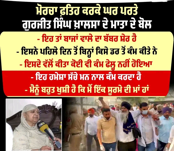 ਮੋਰਚਾ ਫ਼ਤਿਹ ਕਰਕੇ ਘਰ ਪਰਤੇ ਗੁਰਜੀਤ ਸਿੰਘ ਖ਼ਾਲਸਾ ਦੇ ਮਾਤਾ ਦੇ ਬੋਲ